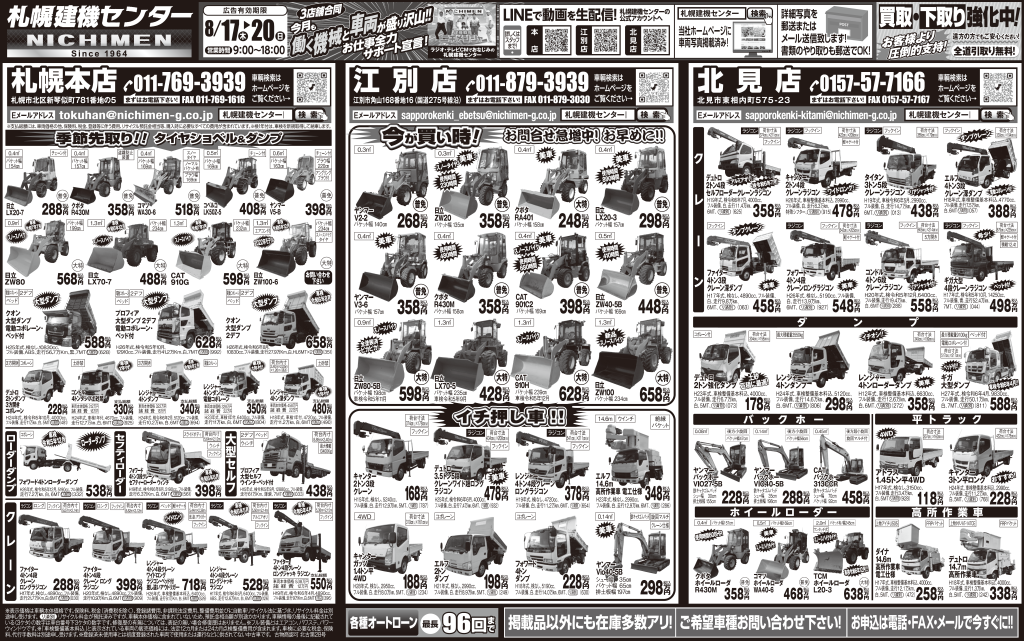 見逃せない機械と車両の数々!札幌建機センターは皆様のお仕事を応援します!