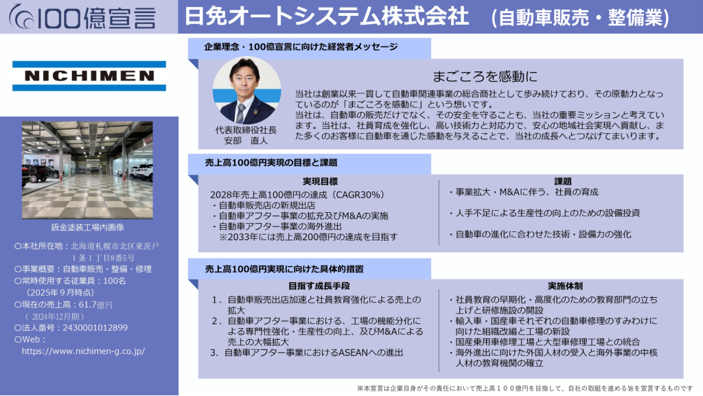 この度、日免オートシステム株式会社では以下の目標を宣言いたしました。