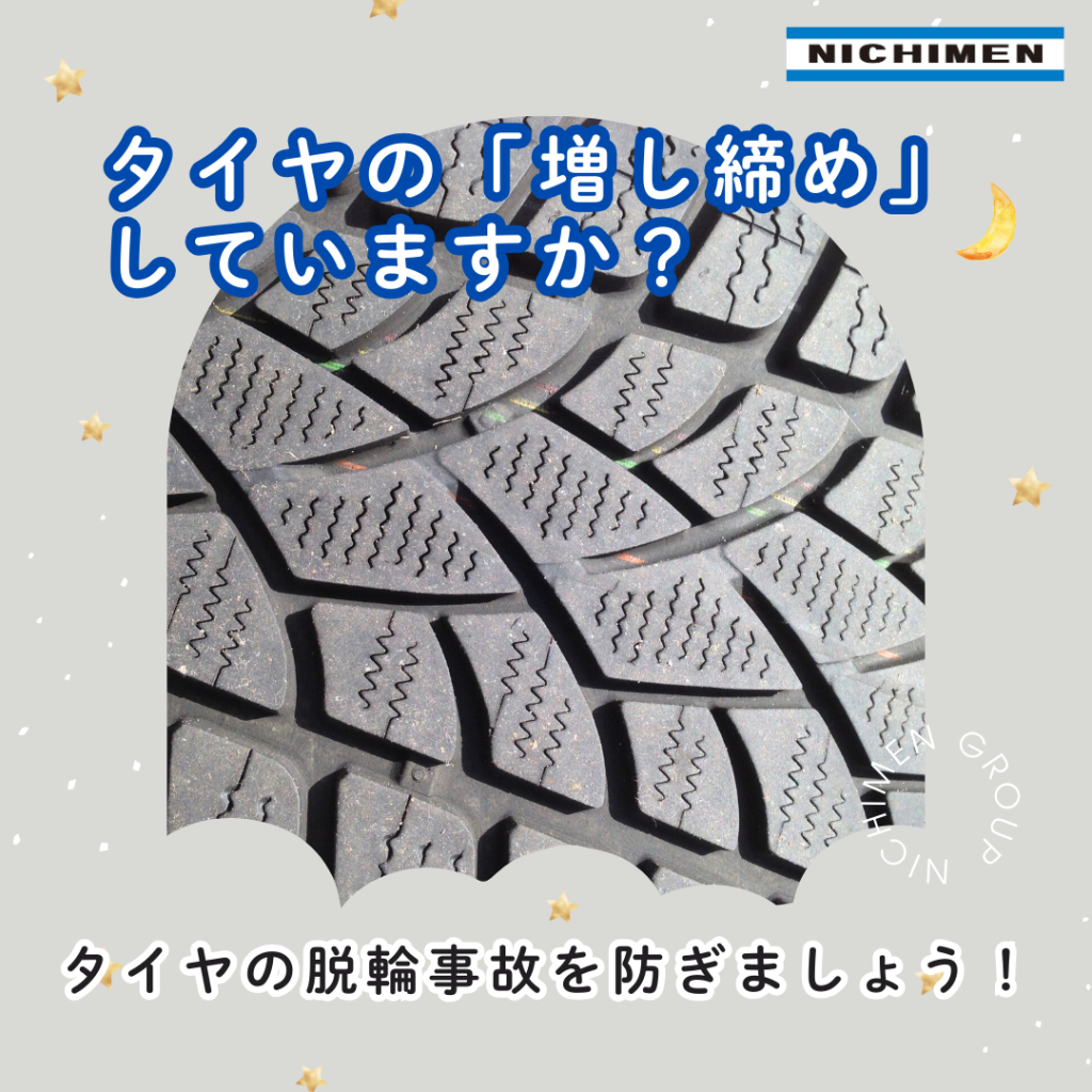 タイヤ交換後、走行中の振動等でナットが緩んでしまうことがあります!脱輪事故を防ぐために、トルクレンチ等での増し締めをおすすめしています。