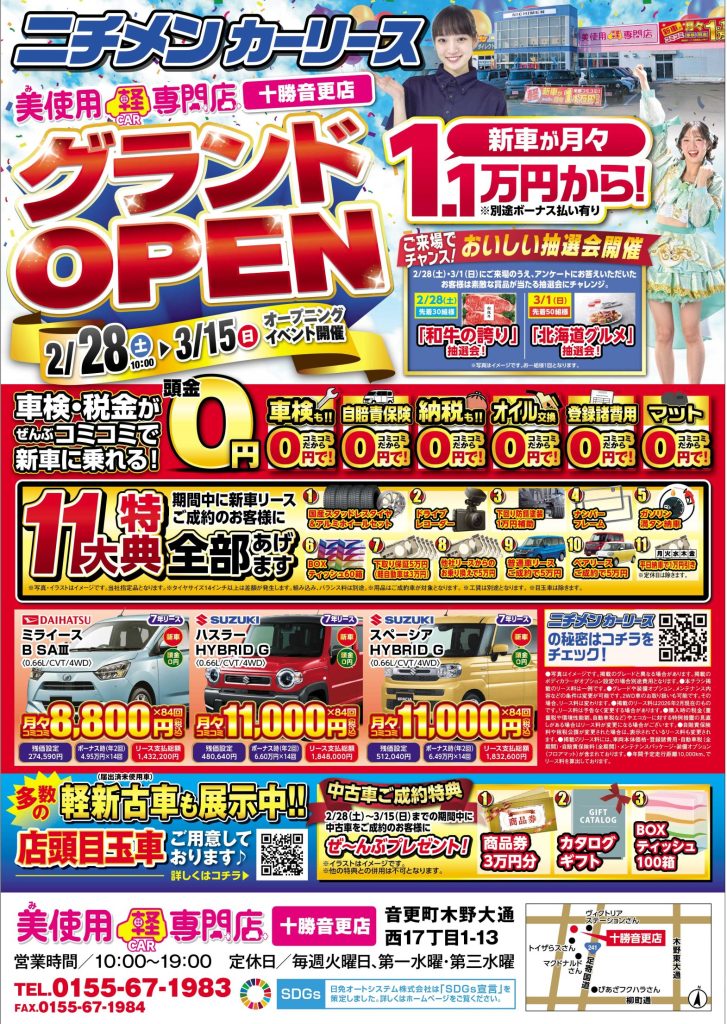 【2/28~3/15】グランドオープン記念フェア開催!十勝音更店