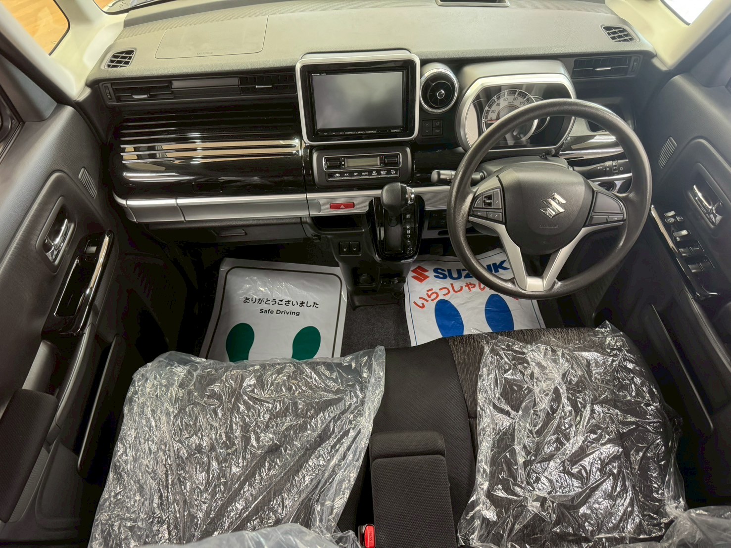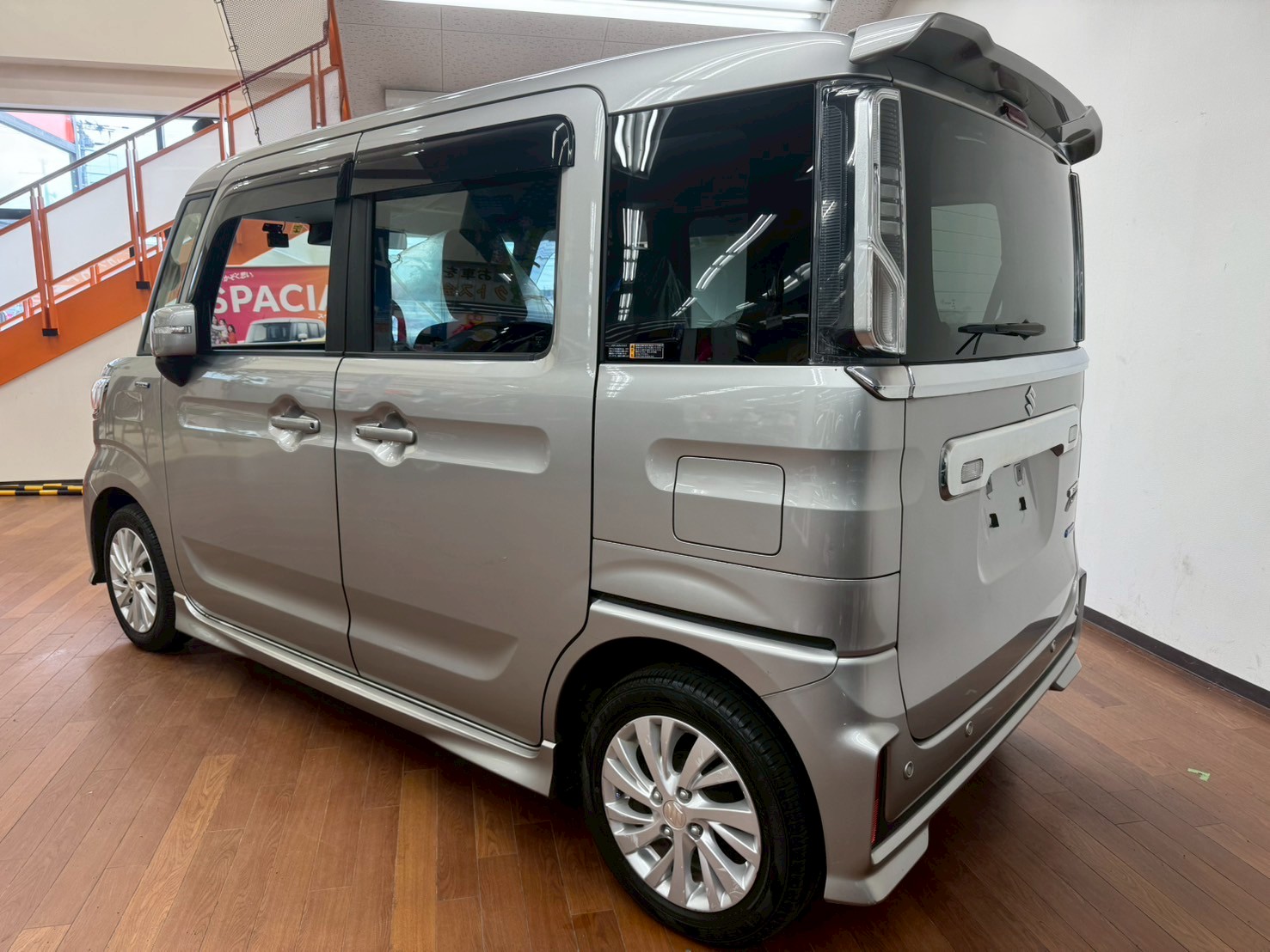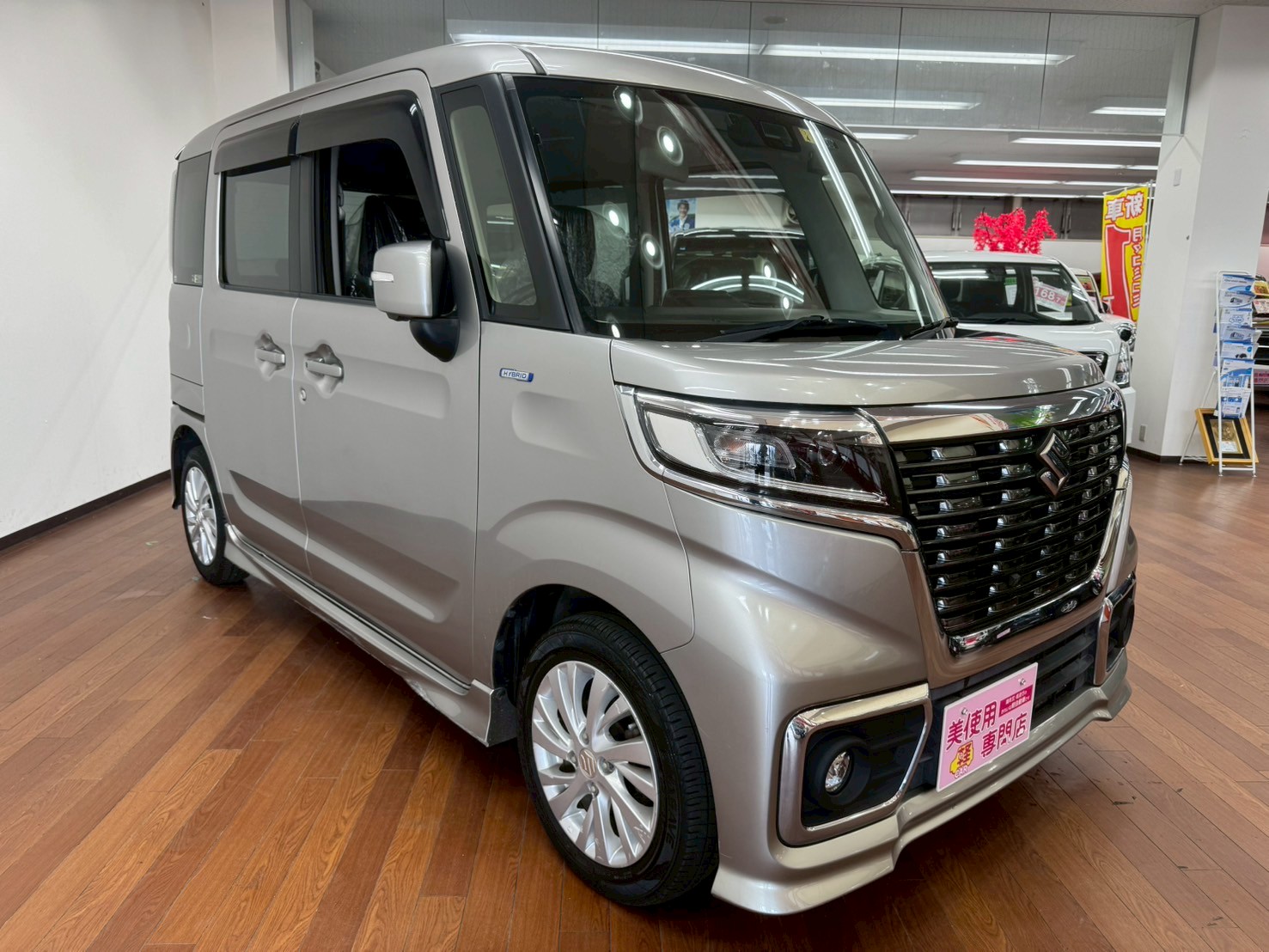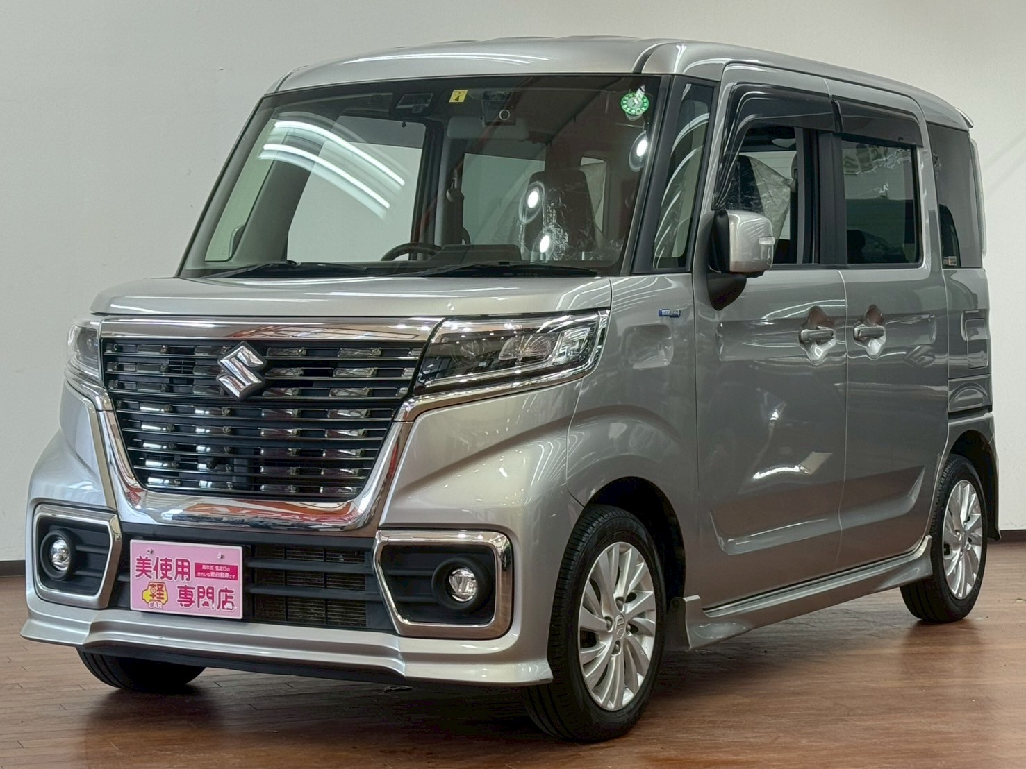 スズキ スペーシア 660 カスタム ハイブリッド GS 4WD 8インチフルセグナビ 全方位モニター バックカメラ LEDヘッドライト 前席シートヒーター ETC 前方録画ドラレコ (スチールシルバーメタリック)