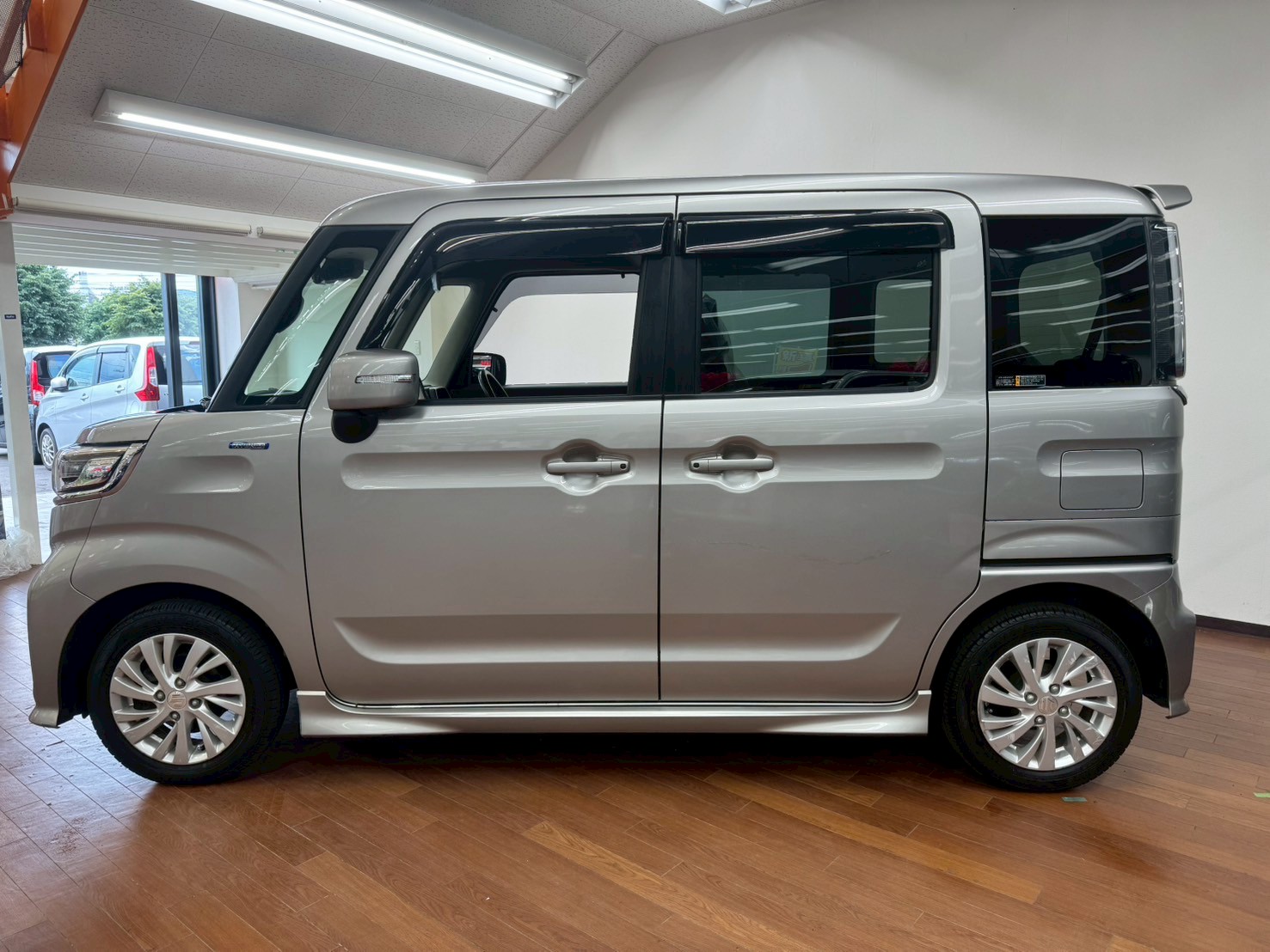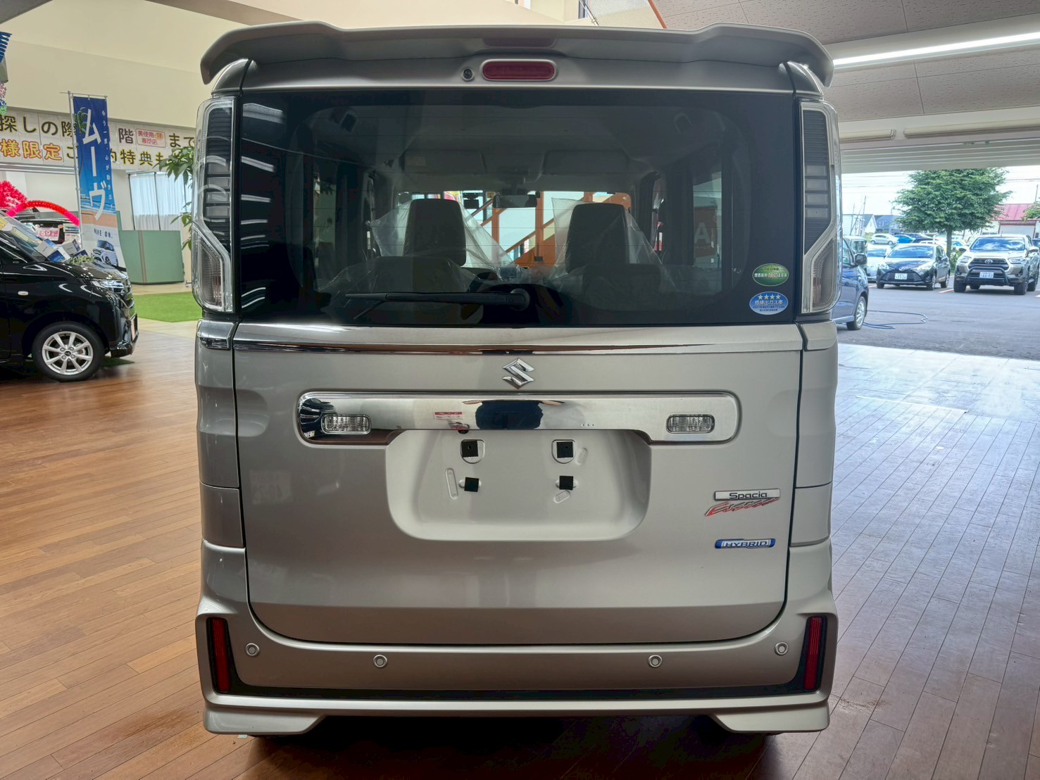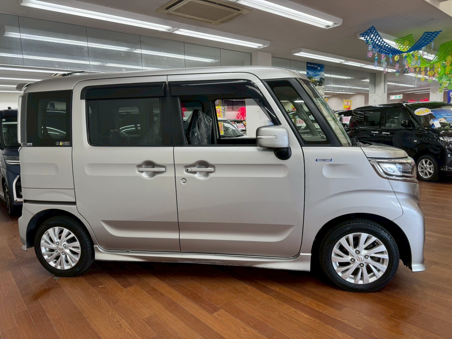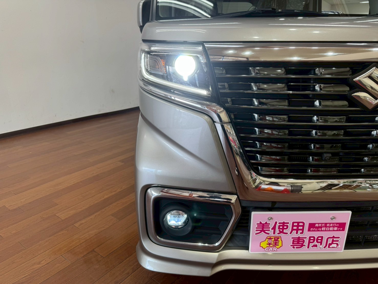 スズキ スペーシア 660 カスタム ハイブリッド GS 4WD 8インチフルセグナビ 全方位モニター バックカメラ LEDヘッドライト 前席シートヒーター ETC 前方録画ドラレコ (スチールシルバーメタリック)