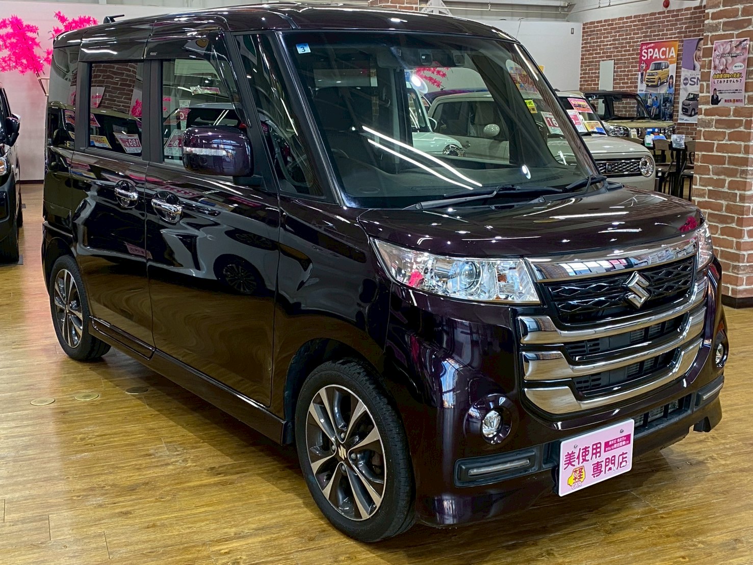 スズキ スペーシア 660 カスタム Z 4WD 4WD 社外ナビゲーション バックカメラ キーレス プッシュスタート アイドリングストップ ABS 衝突被害軽減ブレーキ 衝突安全ボディ 盗難防止システム 助手席側パワースライドドア フォグランプ (ムーンライトバイオレットパールメタリック)